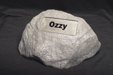 ‘includes either the engraved paw print rock urn or the engraved garden rock urn plus the peaceful sounding engraved wind chime”