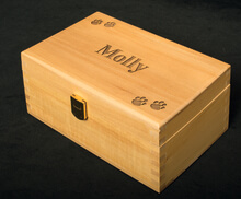 “includes Engraved Wood Urn and choice of paw print, ornament, keychain, or heart keepsake”